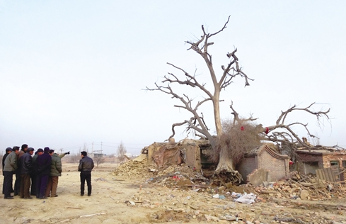北梁改造过程中,拆迁户的安置与补偿问题向来是工作的重点和难点。然而在拆迁进行到官井梁29号院时,户主吴志强和家人商量后提出:家里总计350多平方米的拆迁面积,他们愿意放弃其中的100平方米,换取拆迁后留给院落西北角的古榆树的生存空间。