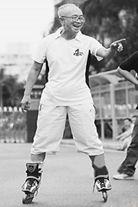 说做就做,曾铭钦立马买来轮滑,首先在自家大厅里练,摔过几次跤后,居然很快学会了掌握平衡等基本技巧。一周后,他就登上了小区的篮球场,每天下班后在篮球场上练习轮滑。