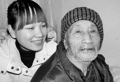 爷爷,不是她的亲爷爷,是路边捡了她,把她养大的拾破烂老人,今年已90岁高龄。