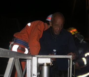 老人发出微弱的呻吟声,家人在旁边焦急万分。现场指挥员立即决定,派2名消防官兵佩戴好安全防护装备坐上救生台进行救援。经过15分钟的努力,消防官兵将老人安全送到地面,并交给医护人员。