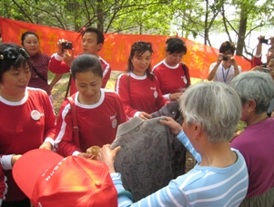 很多市民走到正能量联合会的台前。“只要捐一元钱,就可以得到一盒饮料,捐款会用于给孤寡老人购买新年衣服、袜子等物品。”联合会的负责人陈月娇说他们的公益活动得到了爱心企业的无偿赞助。