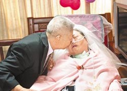据台湾媒体报道,“雪梅,我每天都用泪水呼唤你,你什么时候才能再唱歌给我听?”81岁老荣民陶天恩55年前与邱雪梅结婚,3年前邱雪梅出车祸变植物人,陶天恩不离不弃每天照顾。25日是两老结婚纪念日,他为妻子披白纱,誓言永远守护爱妻。