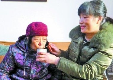 这时,老人的女儿赵雪桂正忙着为她准备营养午餐。每天早上6点半开始,赵雪桂就要起床给母亲准备早饭、外出买菜、准备中餐晚餐、带母亲散步。回家后,她还要细心地为母亲按摩。晚上还要起床护理母亲上厕所,每天的护理辛苦而繁琐。