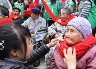 经过几天的准备,志愿者们将37位老人的围脖织好后,就立即给敬老院的老人们送去,并陪老人们聊天、唱歌,一起度过一个温暖的上午。