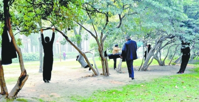 记者昨天找到了该公园管理处杨主任,他介绍,将大树当作健身器的行为一直屡禁不止,甚至还有树枝被折断过的现象。“尤其是横向生长的树枝,公园管理方一旦发现就会及时劝阻。”杨主任说,目前还找不到更好的解决办法。