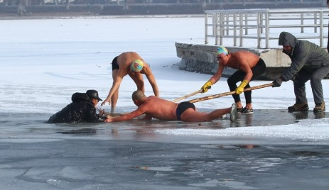 2013年12月10日9时40分,长春市南湖公园游泳区附近,一位老人仰面躺在冰水混合的湖面上,一动不敢动,口中断断续续呼喊着“救命……救……命……”。