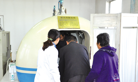 随后,记者来到市第二人民医院高压氧治疗中心,从高压氧舱外的显示屏上看到,有10名患者正在高压氧舱内做高压氧治疗。