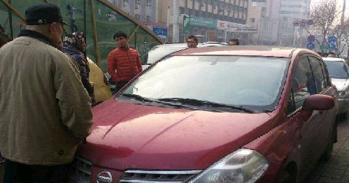 父女俩与车主对峙约20分钟里,引来了部分路人的围观,甚至有人拥堵在红色轿车周围。