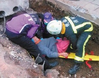 昨天中午12点多,路人看到汤姓人瑞在住处不远的介寿路,跌到工地的排水沟内,报警救人。