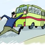 他几乎累得快要背过气,冲出地铁出口,直奔过去。哎呀,偏偏慢了一小步,这辆公交车开出站了。