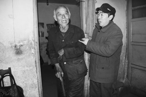 12月26日16时许,在安阳市北关区豆腐营街道办事处新村社区书记李如生的带领下,记者见到了正在帮残疾老人秦玉田搬煤球的张爱新。