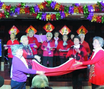 1月28日,青岛恒星老年公寓组织了一场“金马迎春同乐会”,同乐会从上午9点开始,持续了一个多小时,均由入住的老人们自己表演,节目有合唱、歌伴舞、扭秧歌、顺口溜、模特队等,现场气氛十分热闹活跃。“别看我们老人的年龄多数都在75岁以上,但是听说过年演节目,一个个都可积极地报名了!”恒星老年公寓的公寓部主任孙云香笑道。