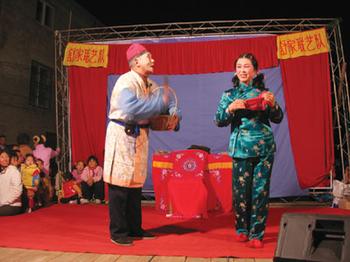 阮企德说,解放前奉化西坞金家堰有个吴小山家庭曲艺班,逢年过节常到江口阮家和陡门桥一带演出,曲艺班演到哪村他就跟到哪村。后来,他和曲艺班的人熟了,就开始学唱滩簧。