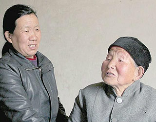 “给我吃,给我穿,给我烧炕,对我好。”胡继敏85岁的婆婆坐在炕上笑呵呵地说。虽然有时记不起胡继敏的名字,但听到“媳妇”两字,就扭过头指着胡继敏说对她好。