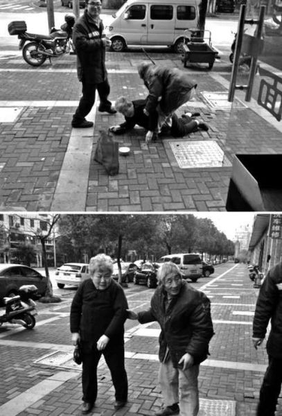 龙虎网讯 2012年12月30日出版的南湖晚报报道“一老乞丐放下乞食饭碗,喊小朱老板一起将老人扶起……”昨天上午,网友“摩尔陈大卫”发微博称,在嘉兴永泰广场,一位老太不小心当街摔倒,这时候,正在乞讨的大爷却用自己最快的速度上前,扔下乞讨饭碗,喊人一起搀扶起老太。事后,该微博引发争议,有网友称乞讨大爷颠覆了乞讨者的形象,也有网友质疑为何其他人没能及时相扶。