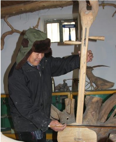 面对记者,刘金年饶有兴趣地拿出他用榆树根作的板胡、二胡、三弦、吉他、马头琴等,一一弹奏起来,用充满深情的声音唱起了《我们新疆好地方》,歌声嘹亮,琴声悠扬。