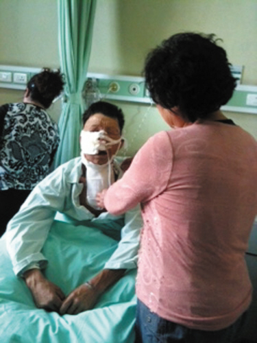 1年前,代先生被确诊为鼻窦癌,然而,一直没有稳定收入的代先生却根本凑不上手术费用,治疗只能一托再拖。直到去年12月26日晚上,代先生的鼻子和嘴里开始流血不止,邻居将他送进大连大学附属中山医院急诊。医生表示,代老汉脸上的肿瘤顶破了鼻子附近的一处血管,才造成了大出血,幸亏救助及时,否则出血不止也会要了代先生的命。
