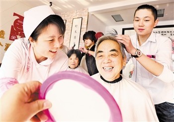 天津北方网讯:昨天,4名“80后”理发师来到北辰区瑞景爱馨园老年公寓,为住养老人义务理发。这些来自本市“柏超”爱心志愿者团队的青年理发师,每月都按期到这里为百余位老年人义务理发,已坚持3年之久,在老年公寓和周边社区传为佳话。