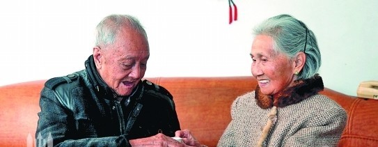 老人的二儿子郑成在告诉记者,父亲性格内向、倔强,母亲的性格开朗外向,两个性格虽说互补,但这么多年来也少不了磕磕绊绊。“我们吵也吵了,打也打了。”刘玉香老人的一句话引来大家的笑声。对于两人的相处之道,郑兴传老人的一席话道出了真谛:“吵归吵,吵完后也不会放在心上。看她生气了,好话一哄就和好了。”记者提出要拍照,两位老人的手很自然地牵在了一起,笑得很灿烂。
