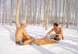 雪地上只穿短裤下棋的情形,您见过吗?16日10时许,在松原大桥附近江边雪地上,就上演了这刺激的一幕。市民张大爷和陈大爷赤裸上身,只穿短裤坐在雪地上下起象棋来。两位老人盘腿坐在一个木质大棋盘两边,地上是厚厚的白雪。