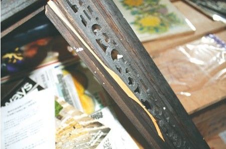 蔡先生很生气地说,这些箱子看起来也不像是被撞坏的,很明显是人为撬开的,而且还草草用胶带缠上,当时他包装时非常小心,特别花了两三百人民币来装箱,然后安上了螺丝好让检查的人松开螺丝来检查里面的画,可现在这些画都被损坏了。