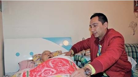 五分钟后,木拉提将翁辉宝稳稳地放在了楼门口,又和陆小梅搀着他慢慢往外走。十分钟后,翁辉宝搭上了出租车,木拉提才去吃午饭,“刚开始还只是把这当工作,时间长了,像亲人一样,已经习惯了。”木拉提说。