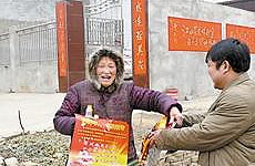 听说当天是张九合老人的生日,张圈子赶忙和家人赶到张九合家,除了米、醋和挂历,还送上200元钱。
