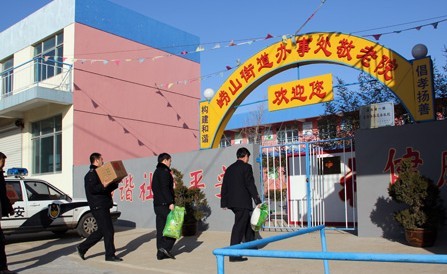 齐鲁法制网威海讯(公宣)在春节来临之际,为进一步推进和谐警民关系建设,巡警一大队组织民警和队员走访慰问崂山敬老院,把真情关怀送到老人心坎上,在辖区营造敬老爱老的良好社会氛围。 1月26日上午,三中队民警队员带着慰问品来到崂山敬老院看望那里的老人。敬老院的负责人和老人们对民警队员的到来表示热烈的欢迎,民警队员为老人送去了大米、橘子等慰问品,和老人们亲切的拉起家常,了解老人的日常生活,询问老人的身体状况,并为老人打扫房间卫生,给他们讲社会上的新鲜事,祝愿他们过一个祥和的春节。