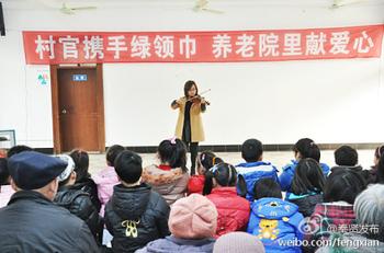 150余名大学生“村官”、“绿领巾”小学生和家长,以及养老院的老人们欢聚一堂。“村官”和孩子们还给老人们带去了自编自演的节目,包括童声独唱、合唱、口琴独奏、用方言演绎的朗诵诗词和小提琴独奏等等,赢得了现场老人们的阵阵掌声。之后的“送年货献爱心”环节更是将现场气氛推向高潮。