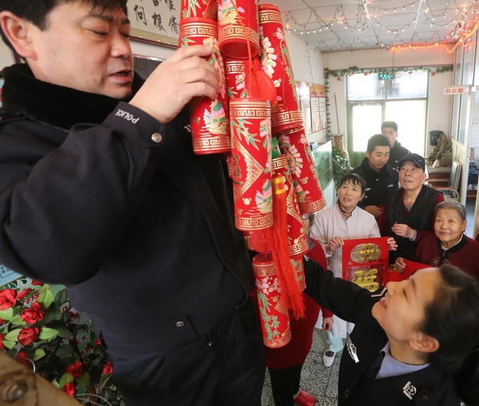 新华网天津频道2月3日电 2月2日,天津市公安局红桥分局丁字沽派出所青年民警前往桃花园敬老院为老年人送去早春的祝福。活动中,青年民警帮老年人剪窗花、贴福字、挂灯笼,还与老人们一起唱歌、跳舞、话家常。