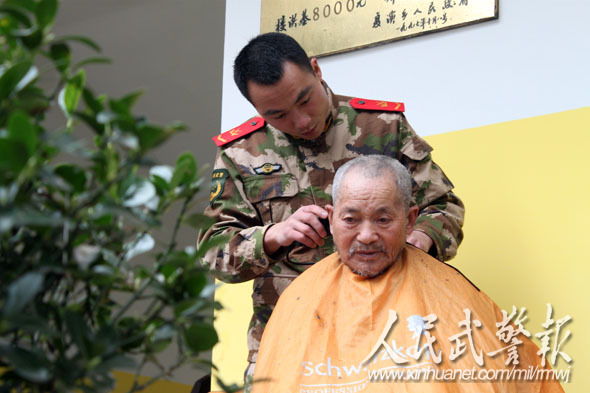多年来,城西敬老院一直是武警中队关心和看望的对象,这里的23名老人已经和中队官兵建立下深厚的情谊,他们大多是膝下无儿无女的孤寡老人。春节将至,中队官兵一如既往的带着节日祝福来到敬老院,与老人唠家常、嘘寒问暖,了解他们的生活及身体状况,希望他们好好保重身体,并祝老人们健康长寿。官兵们有的自发拿起工具为老人们打扫房间、清理垃圾;有的为他们梳头理发、修剪指甲;有的为他们清洗衣物、晾晒被褥……一时间这个平日沉寂的院落里处处洋溢着鱼水情深,一句句诚挚地问候像春风般吹拂进老人们的心里,一股股暖流在老人们心里涌动。