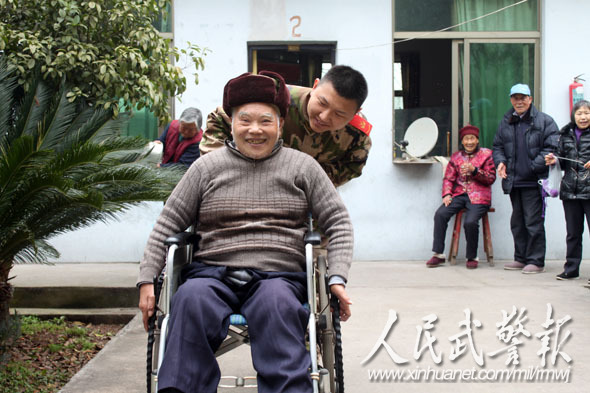 《人民武警报》报道(王鹏勇、周桃安)“老奶奶,我把椅子搬出来了,您晒晒太阳吧。”“老奶奶,多喝点开水。”一个个热心的举动,一句句温馨的问候,让在场的每一位老人感动不已。在中国传统佳节春节到来之际,武警浙江总队金华支队义乌中队20余名官兵带着中队官兵的深情厚谊和慰问品,来到驻地敬老院开展慰问老人们,得到了驻地政府和群众的一致好评。