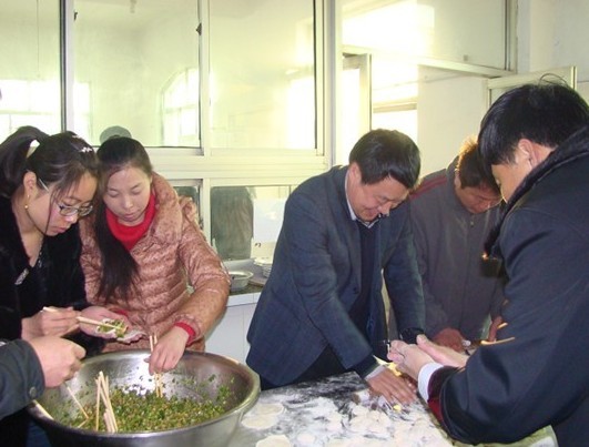 西安镇政府领导亲手为敬老院老人包饺子