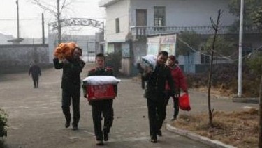 在敬老院里,中队官兵们对老人们嘘寒问暖,拉起了家常,了解老人们的日常生活以及健康状况。由于老人们身体不便,官兵们还替老人们打扫院内卫生,整理内务。官兵们的种种关心与行动,让老人们的脸上洋溢起幸福的笑容,敬老院里一片其乐融融的景象。