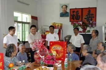 春节期间,广东汀粤商会企业家相聚一起来到童坊敬老院,为老人们送去新春的祝福和慰问品。