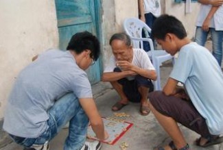 离李官镇中学不远,就是镇敬老院。中午的太阳暖暖地晒着,60岁的王红灯老人正在和老伙计们用石子下“五路棋”。