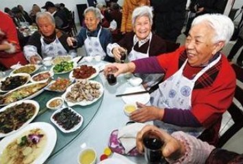 老人们边吃边聊,欢笑声此起彼伏,他们的脸上都洋溢着幸福的笑容。