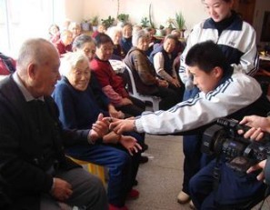 大多数老人在和孩子们聊天的时候,都觉得敬老院里有孩子的笑声,很愉快,也希望孩子们能经常来看看。