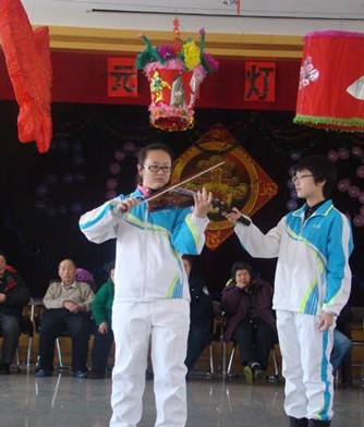学生们慰问在福利院内的空巢老人们,陪伴老人们度过了一个温暖祥和的元宵节。此次活动将社会实践与福利院2013年元宵灯会并为一体,院方设计了猜灯谜、击鼓传花等活动,其中穿插着学生们精彩的表演,孙伟泽同学的《百变扑克牌》带老人们走进精彩的魔术世界;张斯琪同学的小提琴独奏曲《帕格尼尼偶记》连绵起伏,旋律优美,赢得在场观众阵阵掌声;白浩然、郑天一同学的相声作品《你要学习》讽刺了公款吃喝、铺张浪费等不良行为,寓意深刻,深受观众们的喜爱。