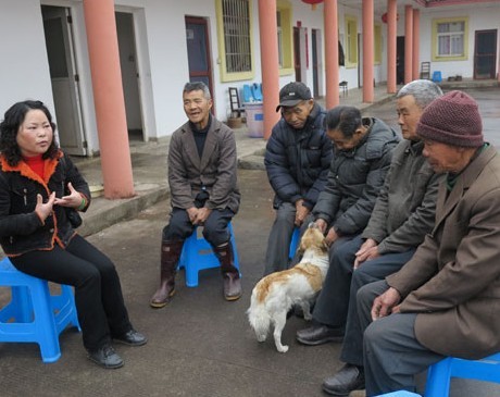 大江网宜春讯 熊水华报道:靖安县双溪镇清华社区居民谭和平是一位下岗工人,生活很艰辛。从2007年开始,她每月从自己微薄的收入中拿出几百元钱,购买食用油、猪肉、糕点等物品送到双溪镇敬老院看望孤寡老人,并和老人们谈心,她的善举已连续坚持6年时间。图为她(左一)与镇敬老院孤寡老人聊天。