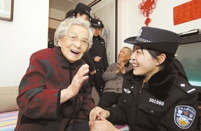 昨日(3日),一支由天津公安南开分局向阳路派出所女警组成的志愿服务队走进南开区黄河道天颐和养老院,与老人聊天解闷,帮助老人打理卫生,在3月5日学雷锋日到来之际为老人送爱心。(记者 王晓明 摄 通讯员 王凯峰)