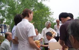 很快,由青年医生组成的民兵志愿者服务队,麻利地布置好临时诊所,为老人们量血压、听心跳,检查腰腿部位,查看眼、鼻、耳、喉,赠送药品。