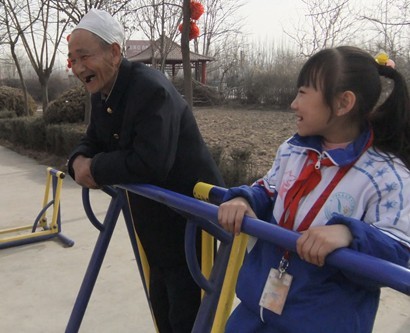 陪老人聊天让小雅楠想起了自己的爷爷。