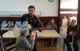 上午8:30记者来到福澄颐养院,驻澄某部队官兵已经来到老人们身边忙碌起来。帮老人剪头发、陪老人聊天、弹吉他为老人演唱《军中绿花》……屋里的老人一边拍手一边跟着唱。“我们平时任务多,趁着今天有空来看望下老人,帮他们做点力所能及的事情。”一位军人对记者说,“我们平时有空都会来敬老院看望他们,并不会因为今天是‘学雷锋日’而特意过来,经常来看看他们,希望他们更开心一点。”