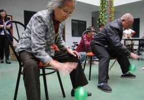活动当天,志愿者和敬老院的老人家一起玩游戏。夹玻子、保龄球、扔飞镖等一个个精心设计的游戏让敬老院的公公婆婆们玩得不亦乐乎。这些游戏都简单易玩,而且每一位参加的公公婆婆都可以获得相应的小礼物,几个回合下来,他们都满载而归。