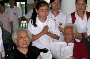 此次志愿者来自安徽职业技术学院。文艺组的同学排练了老歌《南泥湾》、《映山红》、《浏阳河》,利用课余时间积极练唱。熟悉的音乐旋律引起了老人们的共鸣,席庆和老人说,“这节目跟以往是不一样,我们看得懂、喜欢看。侠们真好。”