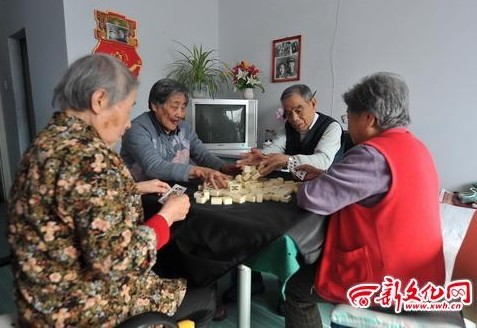 晚晴疗养院内老人们打麻将娱乐 记者 吴廷 摄