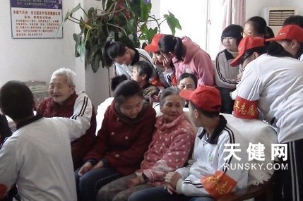学生们给老人们讲笑话。