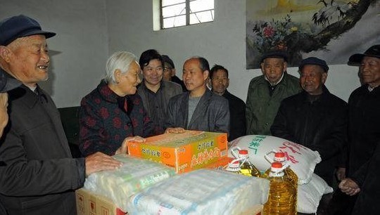 3月26日上午,湛河区曹镇乡齐庄村党支部书记巴国义(右五)为曹镇乡敬老院的老人送去慰问品。齐庄村共有1800多口人,其中300多人为汉民,1500多人为回民。长期以来,该村汉民、回民和睦相处,亲如一家。本报记者牛智广摄