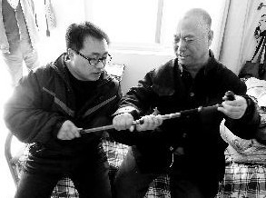 袁叔是位盲人,平时靠一根使用多年的简易拐杖探路。魏国海将登山杖放到袁叔手中,耐心地引导他触摸、安装(见图)。“小魏特别细心,他得知我喜欢听戏,还给我捎来了录音机和磁带。”袁叔向记者透露,魏国海老家在东北农村,读研时每月只有微薄的生活补贴,但他每次都会留心老人们缺什么,下次过来会送到他们手中。